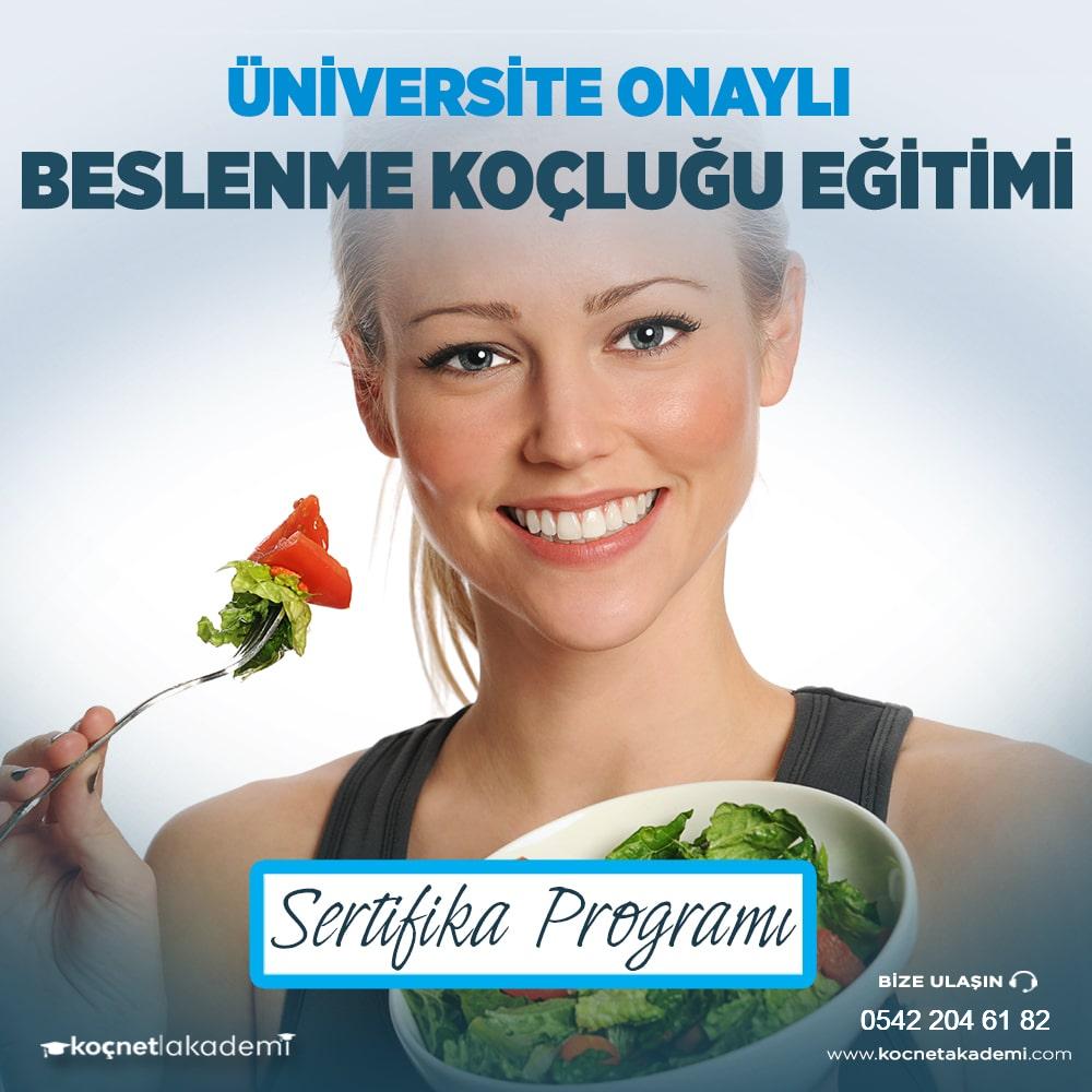 Beslenme Koçluğu Eğitimi Sertifika Programı Beslenme koçu; Sağlıklı yaşam ve beslenme ilkeleri, besinler ile kişilerin enerji ihtiyacı ve günlük enerji hesaplamaları, öğün planlama, metabolizma, beslenme sorunları, mönü planlama ile ilgili bilgi ve becerisine sahip kişidir. Danışanlara sağlıklı beslenmeleri konularında yol gösterirler.