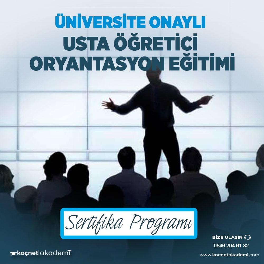 Usta Öğretici Oryantasyon Sertifika programı ile Halk Eğitim Merkezlerinde görev yapan öğretmen, kadrolu usta öğretici ile görev yapacak ücretli uzman ve usta öğreticilerin Oryantasyon konusunda bilgi ve becerilerini artırmak ve mesleki tecrübelerine katkı sağlamak amacıyla Koçnet Akademi ile Üniversite iş biriliği ile hazırlanan mesleki bir programdır.